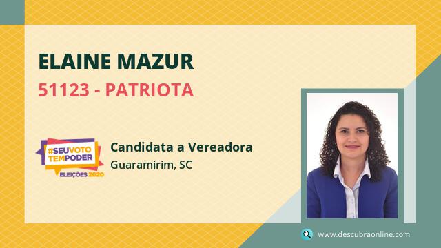 Candidata do PATRIOTA para Vereador, Elaine Mazur obteve 60 votos mas não foi eleito Vereador em Guaramirim nas Eleições 2020.