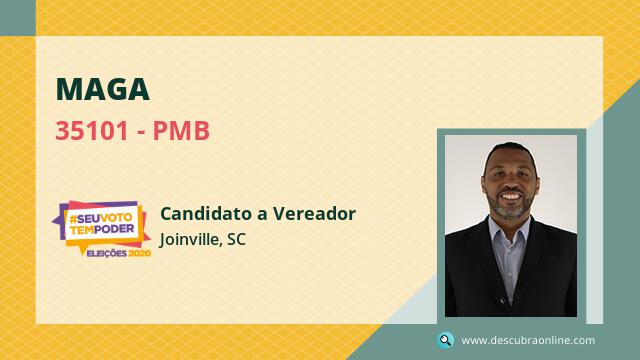Candidato do PMB para Vereador, Maga obteve 588 votos mas não foi eleito Vereador em Joinville nas Eleições 2020.