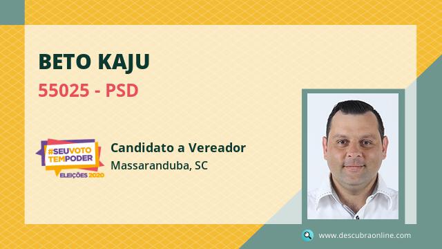 Candidato do PSD para Vereador, Beto Kaju obteve 55 votos e está como Suplente Vereador em Massaranduba nas Eleições 2020.