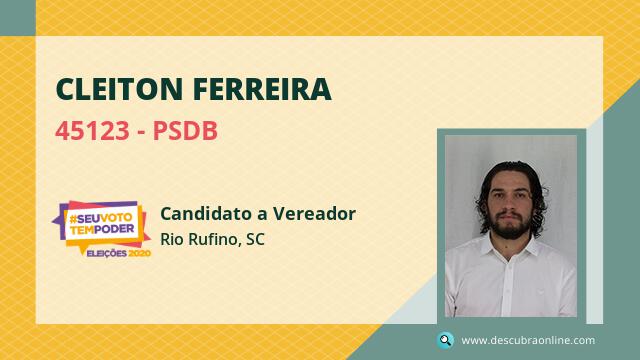 Candidato do PSDB para Vereador, Cleiton Ferreira obteve 8 votos e está como Suplente Vereador em Rio Rufino nas Eleições 2020.