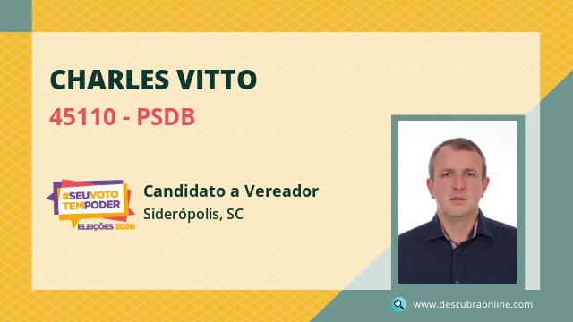 Candidato do PSDB para Vereador, Charles Vitto obteve 421 votos e foi eleito Vereador em Siderópolis nas Eleições 2020.
