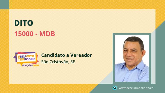 Candidato do MDB para Vereador, Dito obteve 623 votos e está como Suplente Vereador em São Cristóvão nas Eleições 2020.