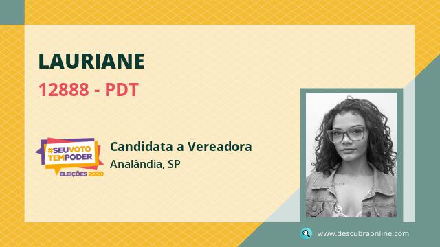 Candidata do PDT para Vereador, Lauriane obteve 9 votos e está como Suplente Vereador em Analândia nas Eleições 2020.