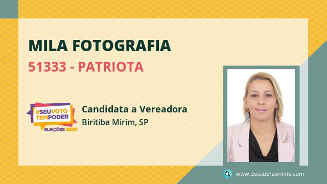 Candidata do PATRIOTA para Vereador, Mila Fotografia obteve 20 votos mas não foi eleito Vereador em Biritiba-Mirim nas Eleições 2020.