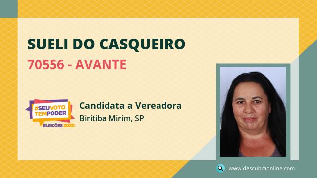 Candidata do AVANTE para Vereador, Sueli do Casqueiro obteve 26 votos e está como Suplente Vereador em Biritiba-Mirim nas Eleições 2020.