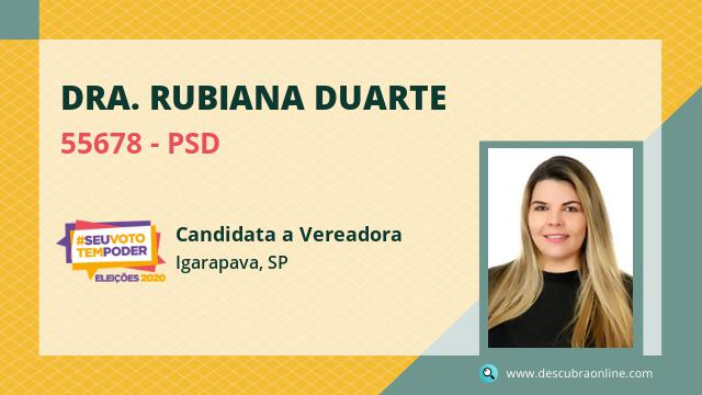 Candidata do PSD para Vereador, Dra. Rubiana Duarte obteve 167 votos e está como Suplente Vereador em Igarapava nas Eleições 2020.
