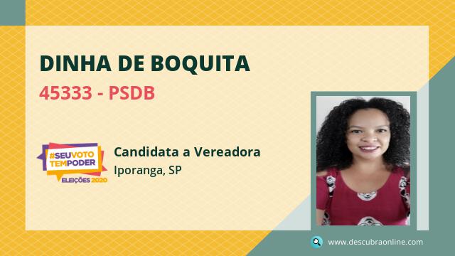 Candidata do PSDB para Vereador, Dinha de Boquita obteve 14 votos e está como Suplente Vereador em Iporanga nas Eleições 2020.