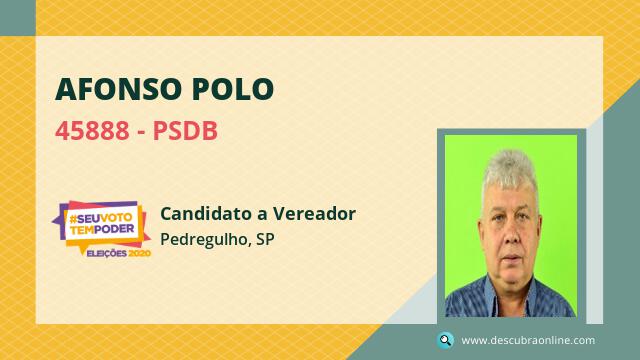 Candidato do PSDB para Vereador, Afonso Polo obteve 30 votos e está como Suplente Vereador em Pedregulho nas Eleições 2020.