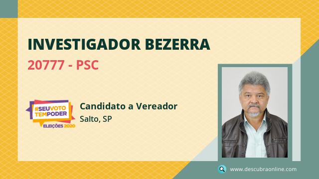 Candidato do PSC para Vereador, Investigador Bezerra obteve 100 votos mas não foi eleito Vereador em Salto nas Eleições 2020.