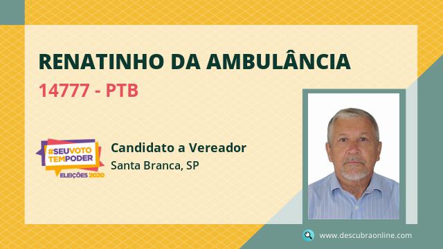 Candidato do PTB para Vereador, Renatinho da Ambulância obteve 17 votos mas não foi eleito Vereador em Santa Branca nas Eleições 2020.