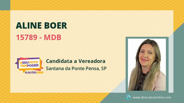 Candidata do MDB para Vereador, Aline Boer obteve 86 votos e foi eleito Vereador em Santana da Ponte Pensa nas Eleições 2020.