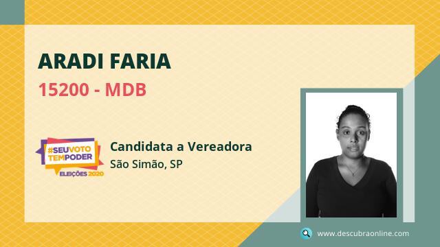 Candidata do MDB para Vereador, Aradi Faria obteve 36 votos e está como Suplente Vereador em São Simão nas Eleições 2020.