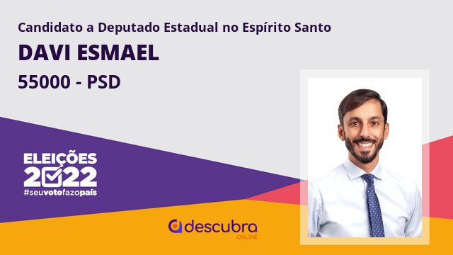 Nascido em 26/05/1982, Davi Esmael tem 40 anos, natural de Vitória - ES, Divorciado(a), Vereador.